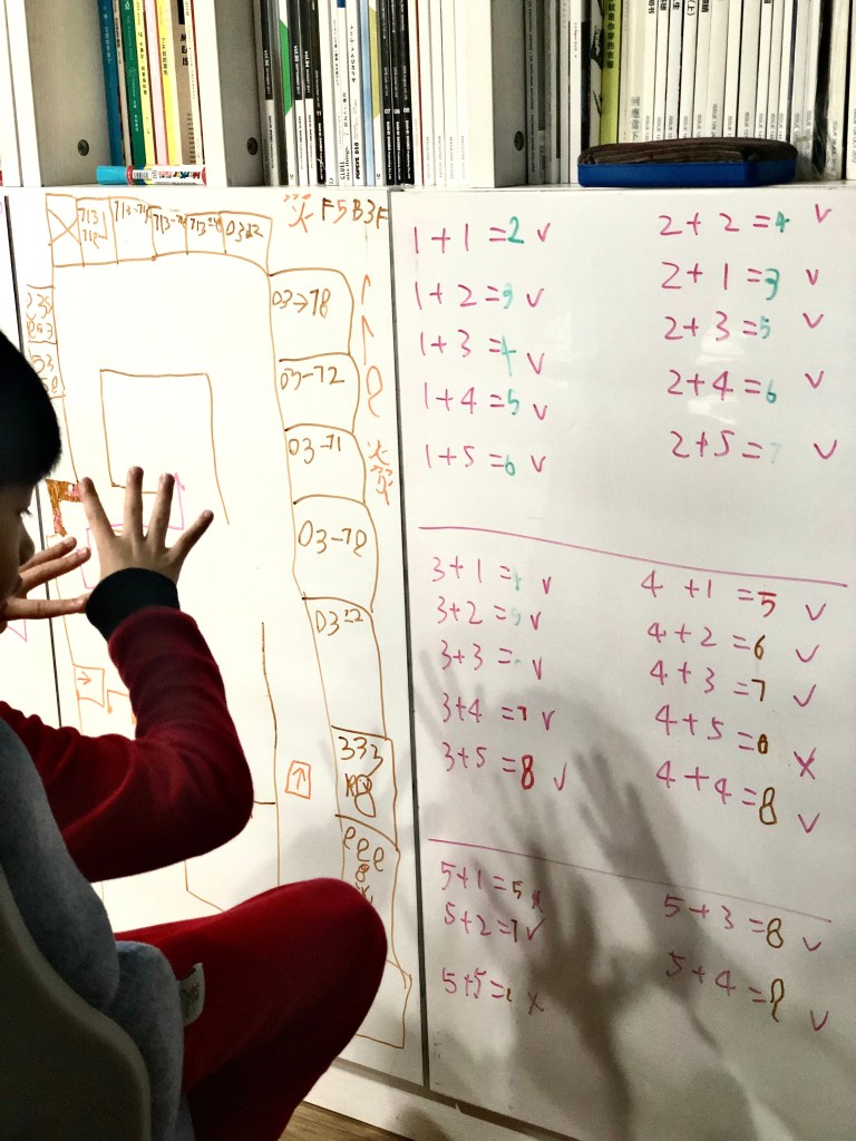 今天给阿查上了一堂数学课!第一次教他数学,先从5以内的数字加法开始吧。